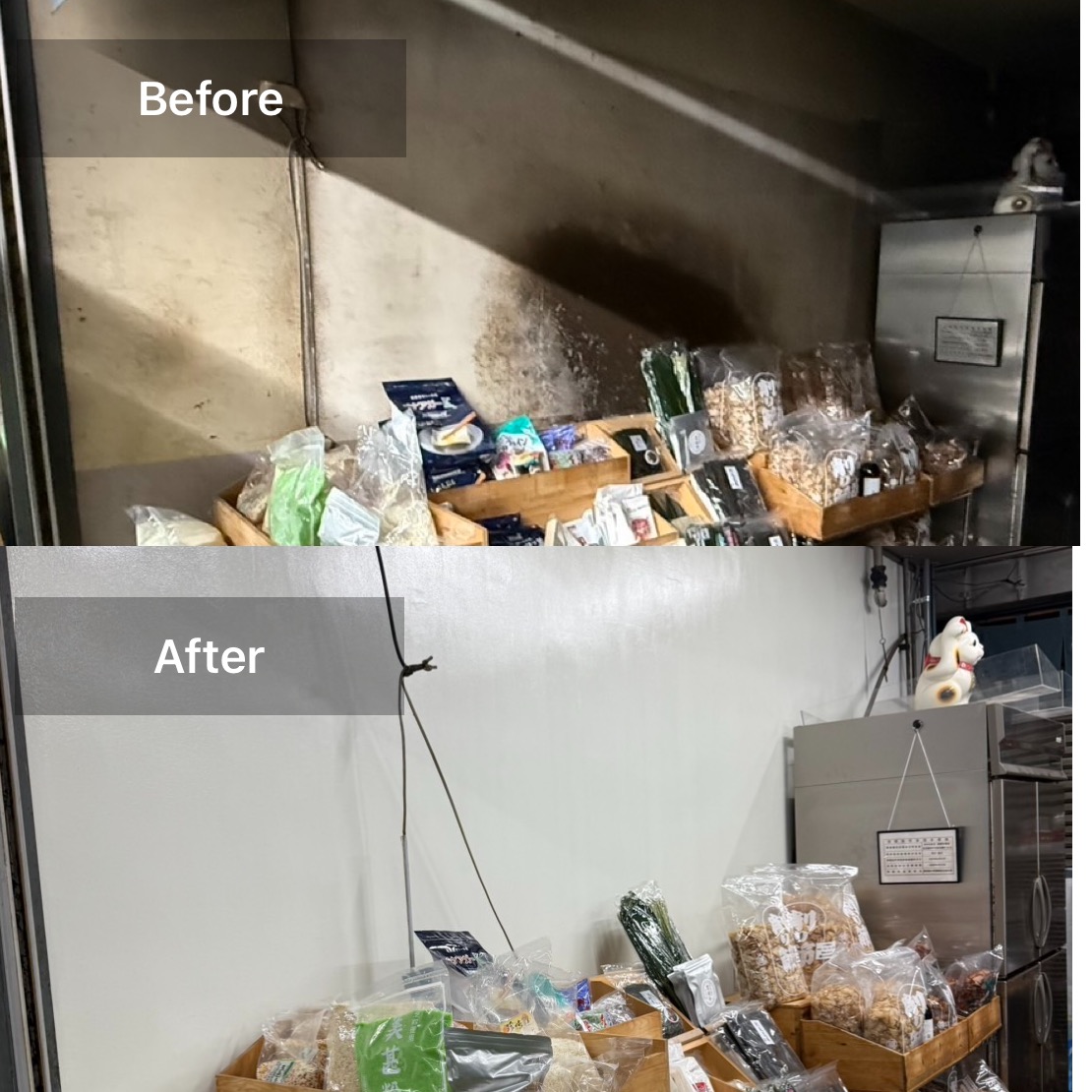 クラック埋めやキズのパテ処理を施しました。続いてシーラー施工、そして中塗り